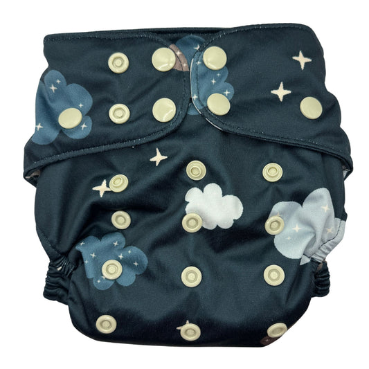 PETITE OS (8-35lbs) 3D Gusset Pocket™ Cloth Diaper in CLOUDY NIGHT