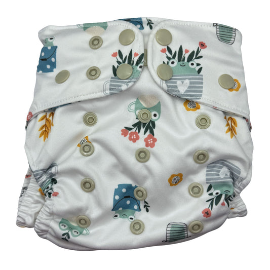 PETITE OS (8-35lbs) 3D Gusset Pocket™ Cloth Diaper in HOP IN THE BUCKET