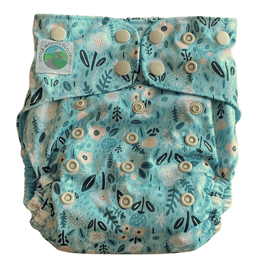 TODDLER (18-55lbs) 3D Gusset Pocket™ Cloth Diaper in TEAL FLOWERS