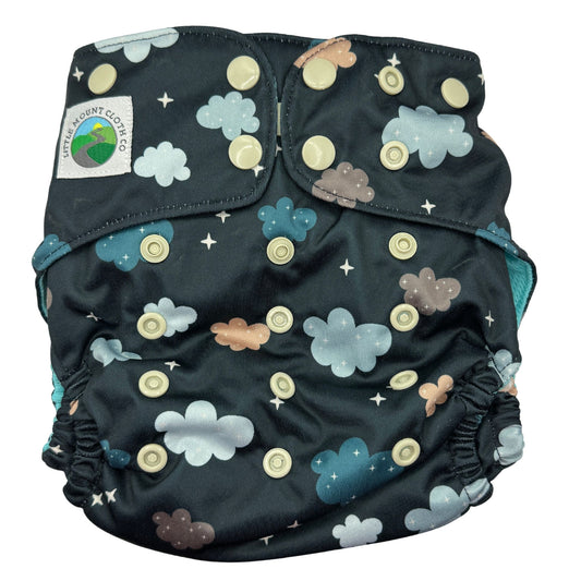 TODDLER (18-55lbs) 3D Gusset Pocket™ Cloth Diaper in Cloudy Night