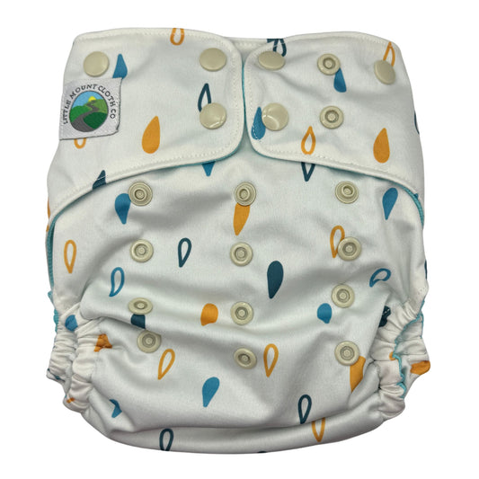 TODDLER (18-55lbs) 3D Gusset Pocket™ Cloth Diaper in RAIN DROPS