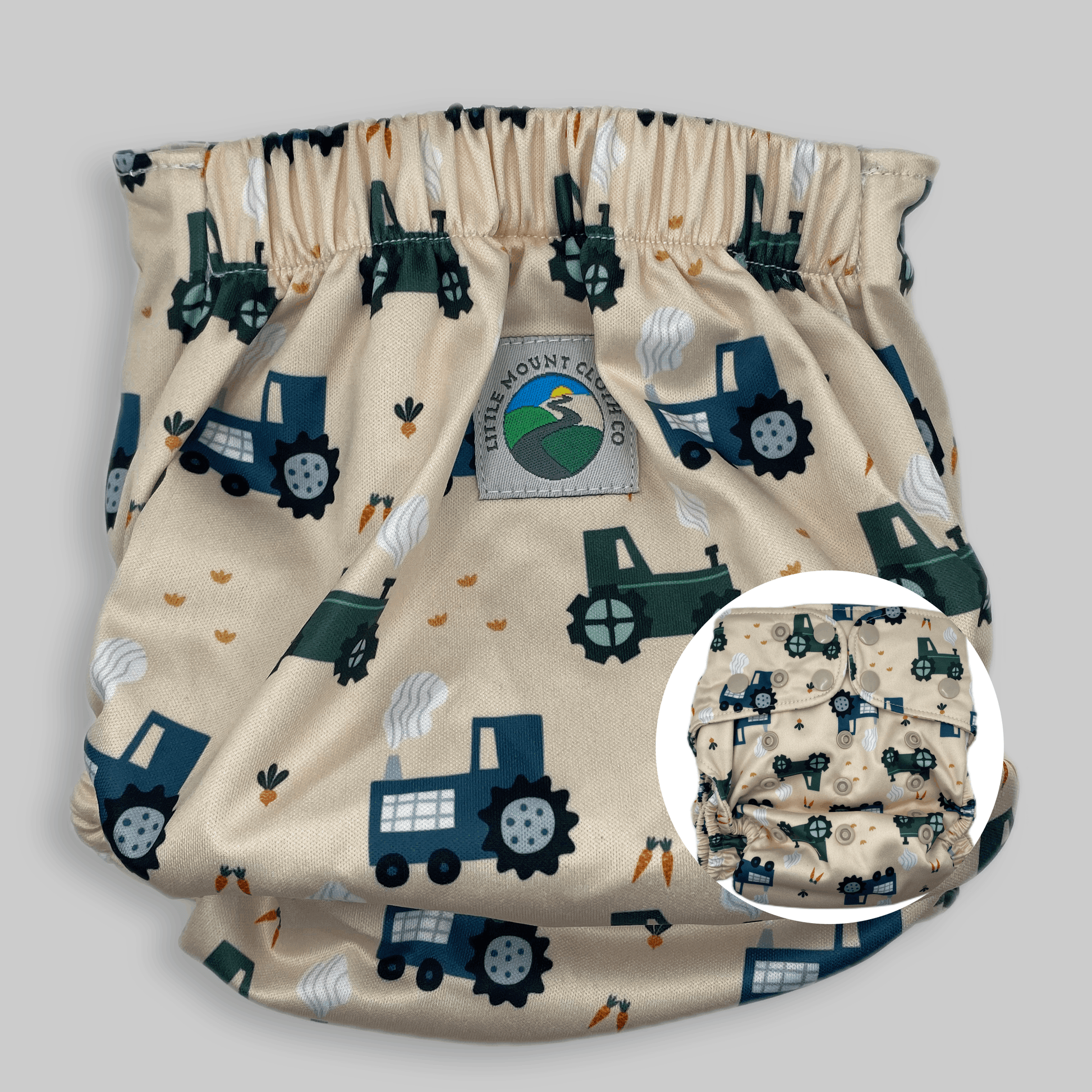 Petite OS (8-35lbs) 3D Gusset Pocket Diaper™ in Tractors