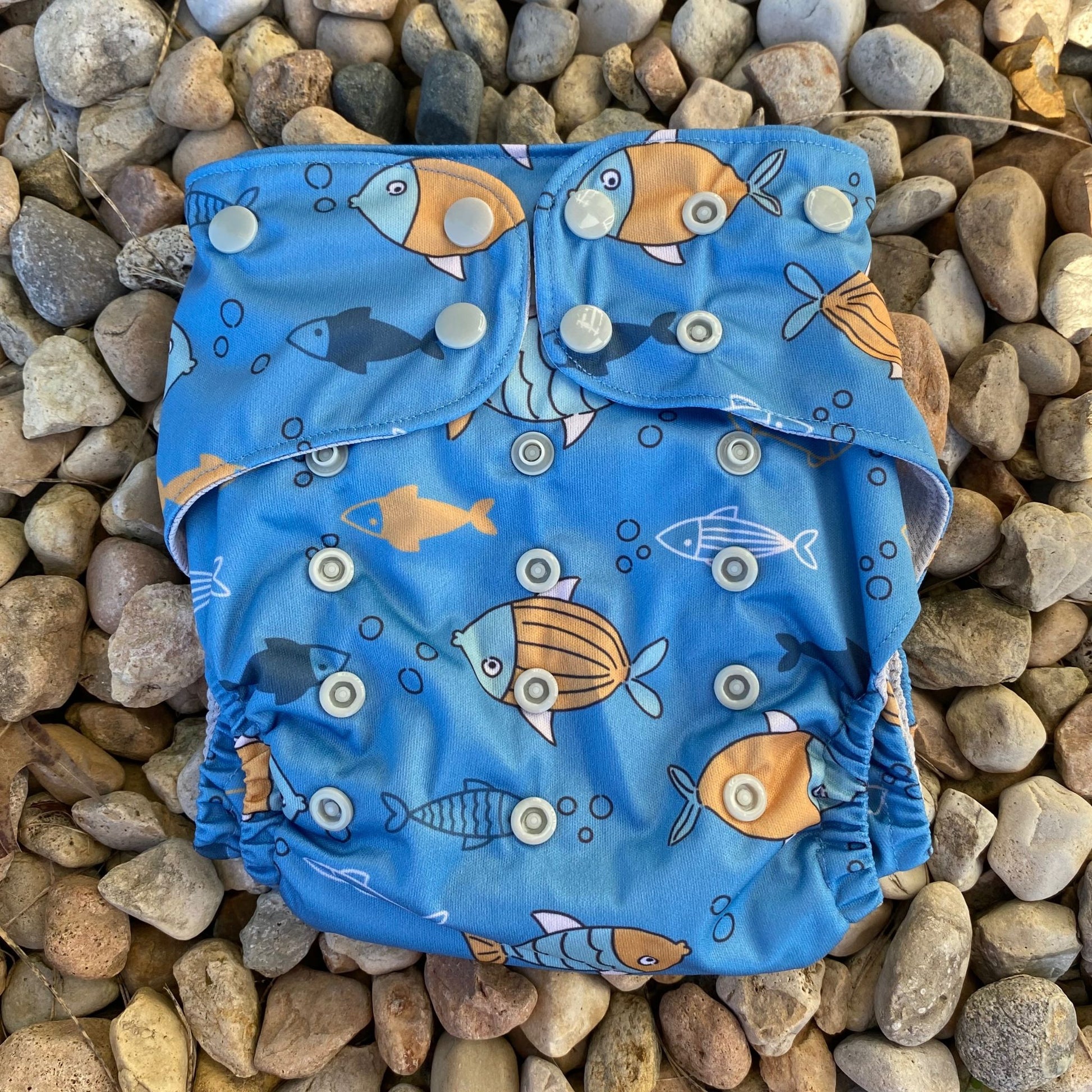 Toddler (18-55lbs) 3D Gusset Pocket™ Cloth Diaper in IN THE SEA