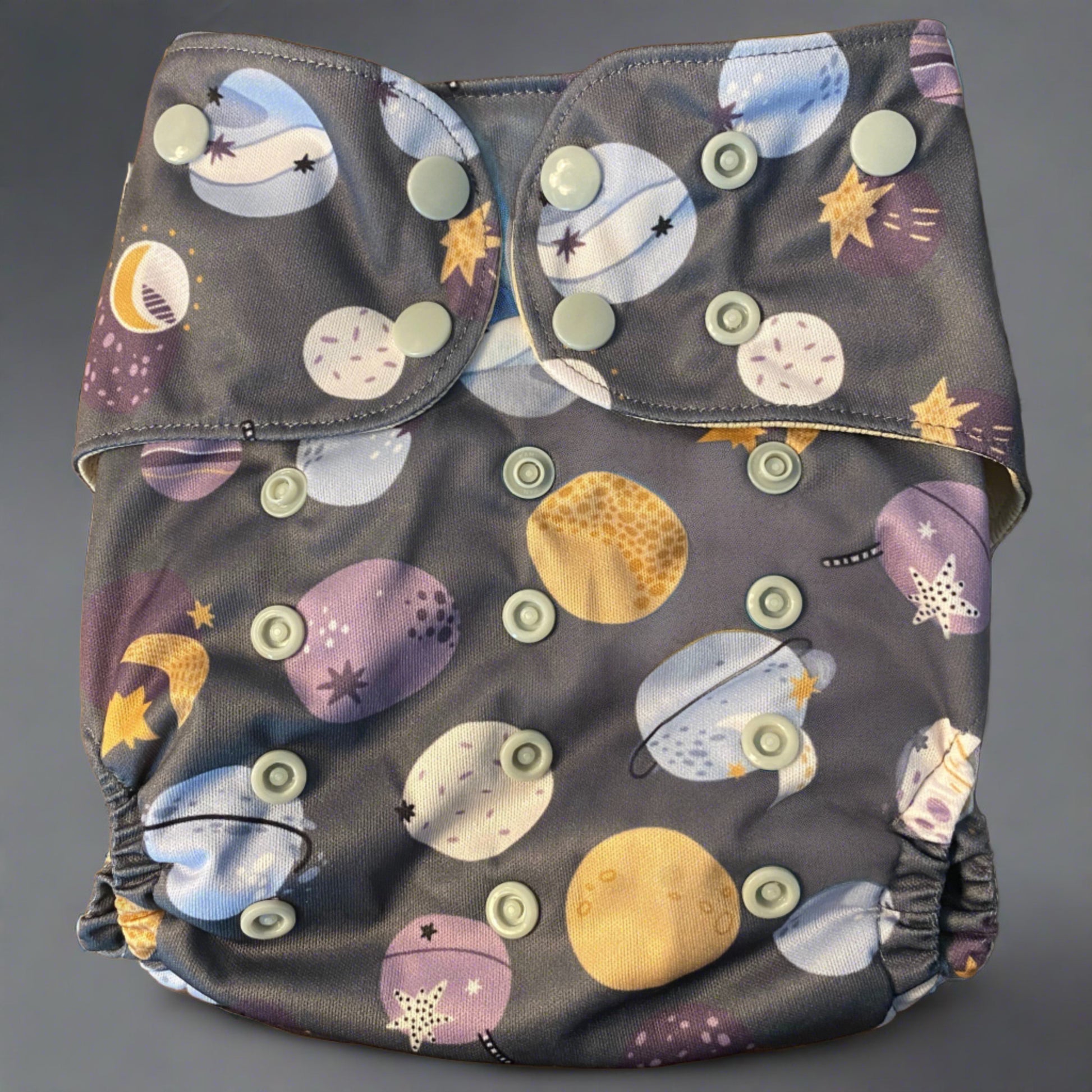 Our XL pocket diaper features a generously wide tummy panel to help prevent wicking with tummy sleepers.